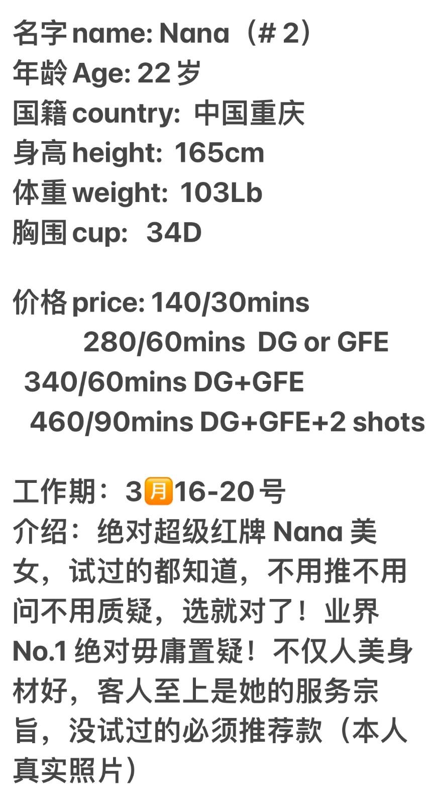 Number 2 girl, NaNa, super popular Chinese girl,pretty and sexy,super good Gfe and DG services.