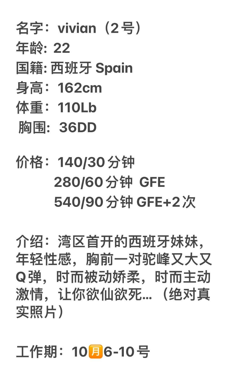 Number 2 girl,Vivian,busty Latina girl from Spain,sexy curvy body,big 36DD,110,lbs,5'1. Hot Spanish experience awaits. First time in Bay Area.